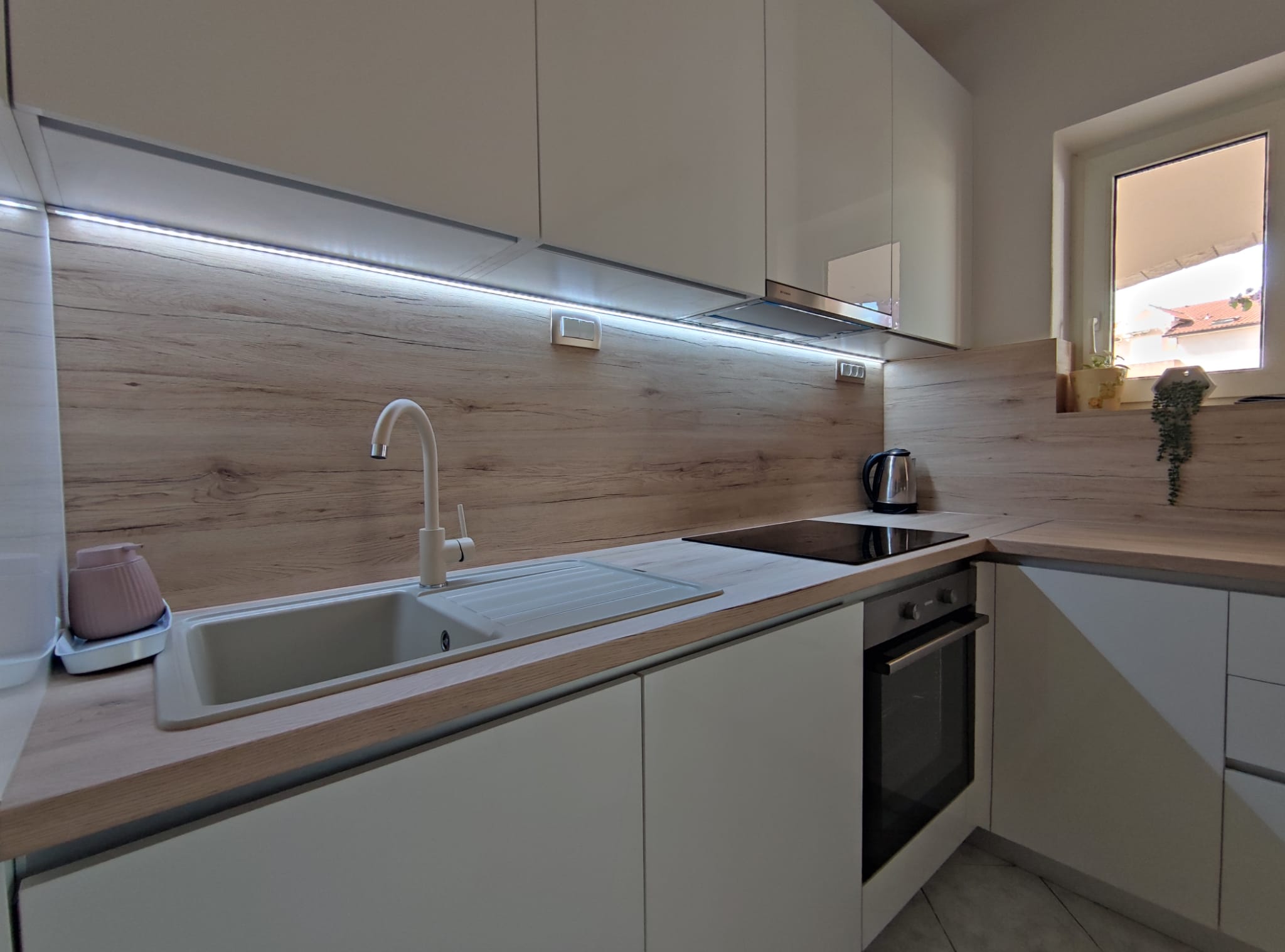 This charming, air-conditioned studio offers the perfect blend of modern comfort and Mediterranean tranquility, located just a short walk from the most beautiful beaches of Vodice. The airy interior with a private balcony is an ideal base for couples who want morning coffee in the fresh air and quick access to the sea.